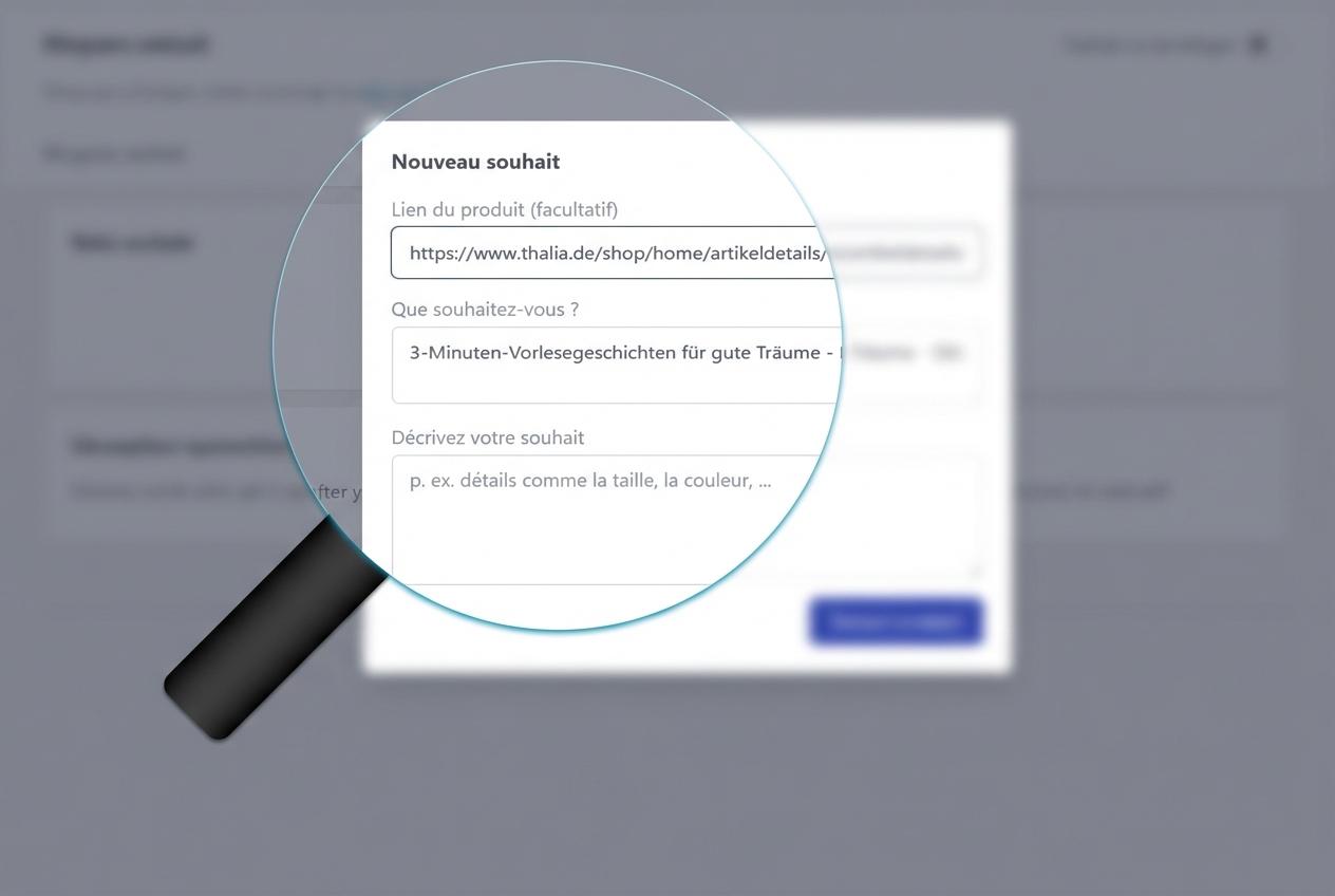 Ajoutez autant de souhaits que vous le souhaitez à votre liste. Que ce soient des produits ou du texte libre.